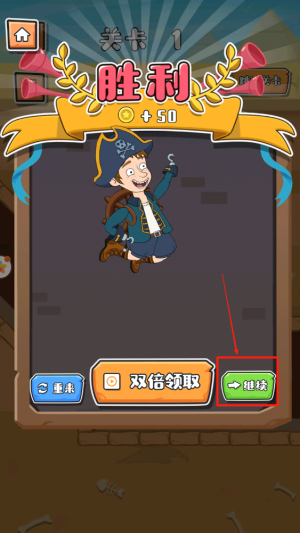 4、领取奖励:在胜利界面,点击“继续”按钮领取奖励并进入下一关卡。