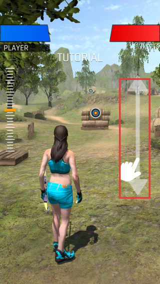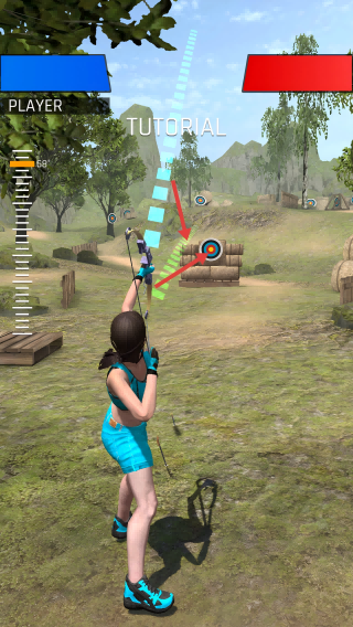 3、基础射击操作:拖拽弓弦瞄准目标松手击发,通过落点反馈调整俯仰角度持续提升射击精准程度。