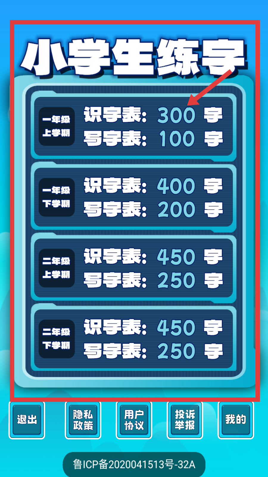 1、进入应用,选【小学生练字】对应年级学期,如【一年级上学期】,开启练字。