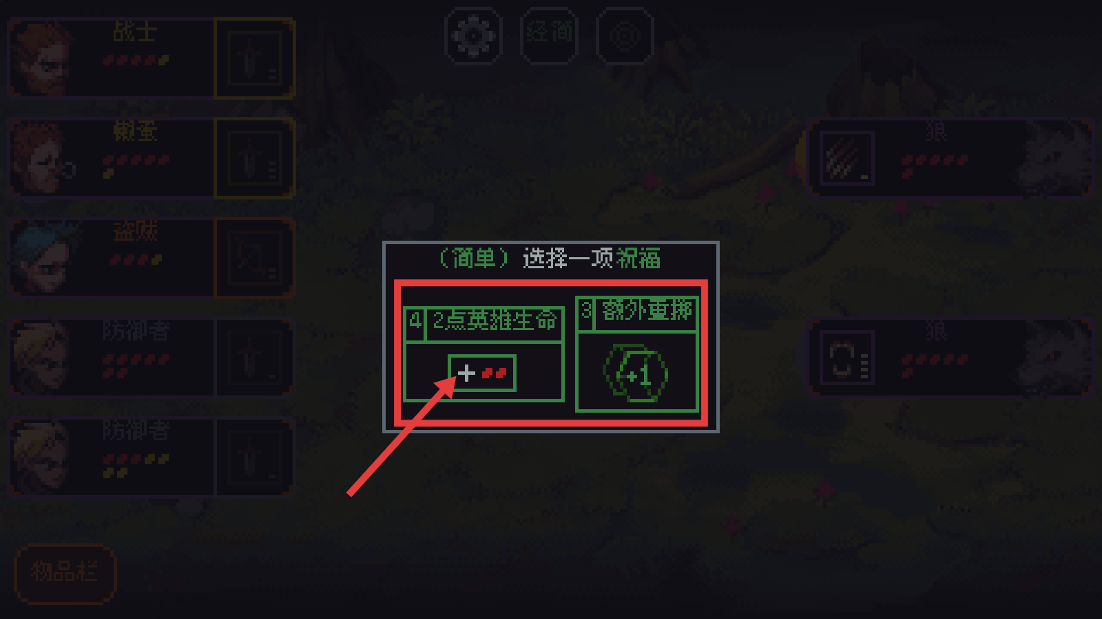 1、战斗前优先选【2点英雄生命】祝福,提升英雄续航,为后续战斗积累生存优势。
