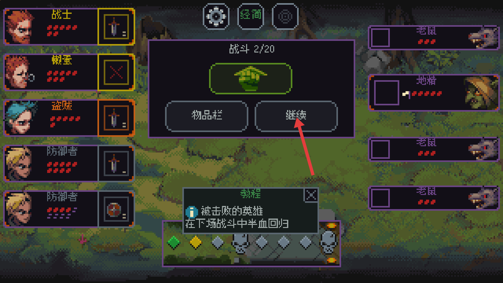4、战斗结束点击【继续】,败阵英雄下战半血回归,合理规划阵容恢复节奏。
