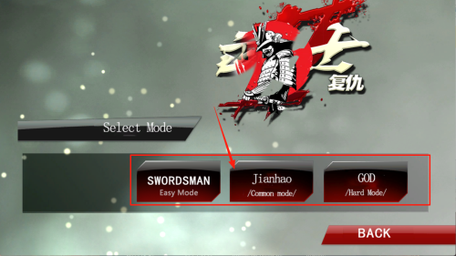 3、挑选角色:在“SWORDSMAN Jianhao GOD”界面,点选“Easy Mode”或所需难度后按“BACK”返回确认。