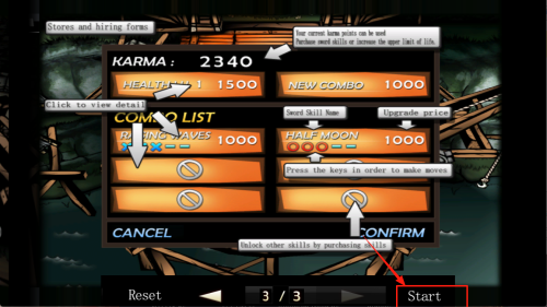 4、确认出战:在“KARMA: 2340”面板核对属性后,点击“CONFIRM”即可开始战斗。