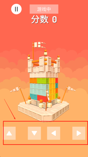 2、操作控制积木:在游戏进行中,使用屏幕下方的左右箭头按钮来控制积木移动。