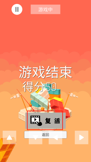 4、结束或复活:游戏结束后,可以选择“复活”按钮重新开始,或者点击返回退出游戏。