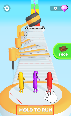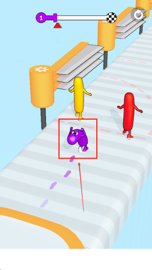 2、操控香肠人移动:控制角色在赛道奔跑,灵活转向躲避陷阱,保持前进节奏,避开障碍物阻碍。