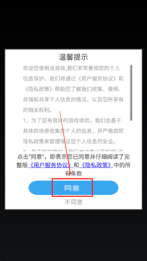 1、同意条款:在游戏启动时,点击“同意”按钮接受用户协议和隐私政策。
