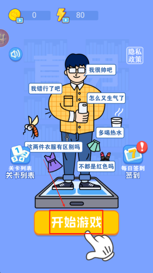 1、玩法聚焦脑洞对话:核心是文字回复与剧情推进,特色在于 “情商考验 + 自由选择” 结合,区别于普通闯关游戏。