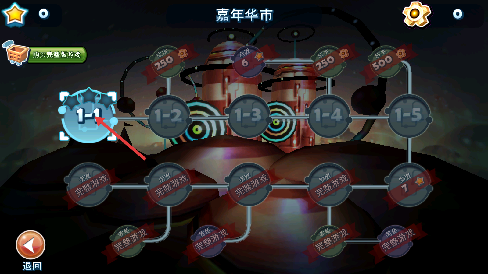 1、在【嘉年华市】地图,点击【1-1】关卡图标,开启首关冒险。