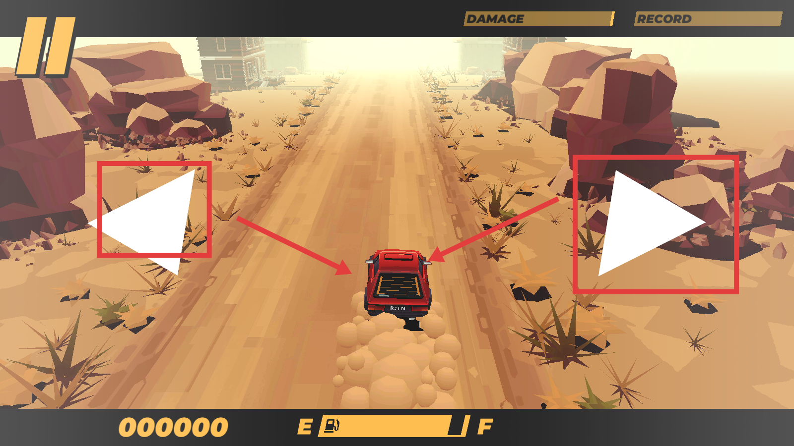 2、挑战中通过【左右箭头】操控红车转向,躲避沙石、植物,维持行驶不碰撞。