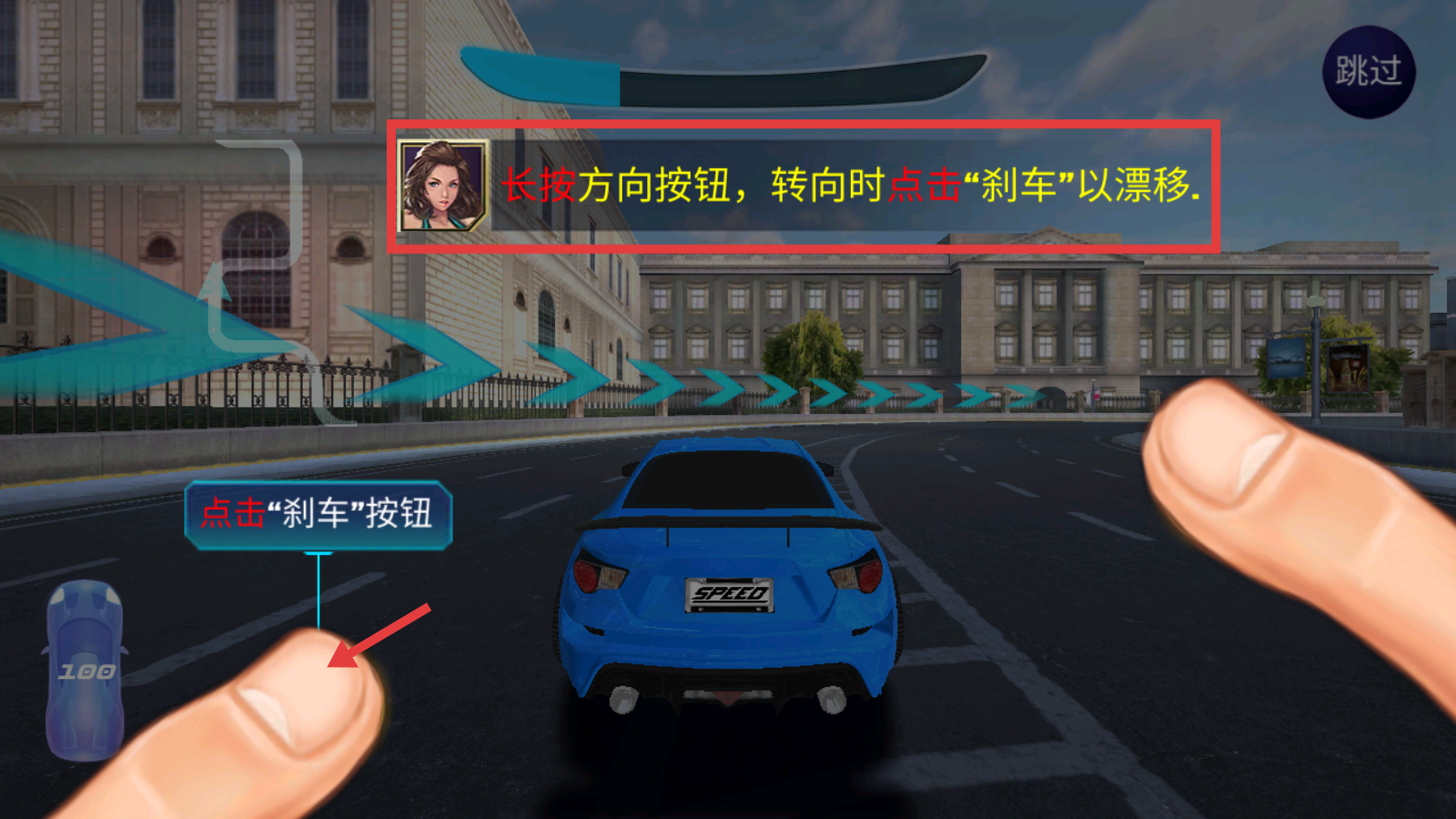 2、漂移需长按方向按钮,转向时点击【刹车】按钮,掌握此技巧可流畅过弯提升表现。