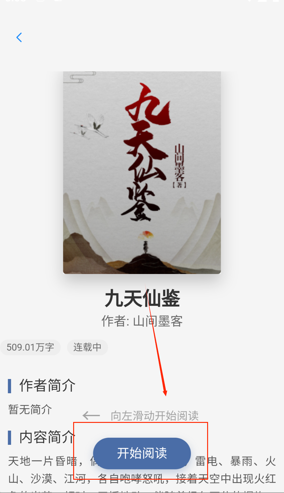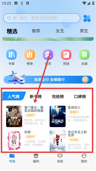 1、在APP的书城页面,点击人气榜里的目标小说,可进入该书的阅读界面,准备开始阅读内容啦。