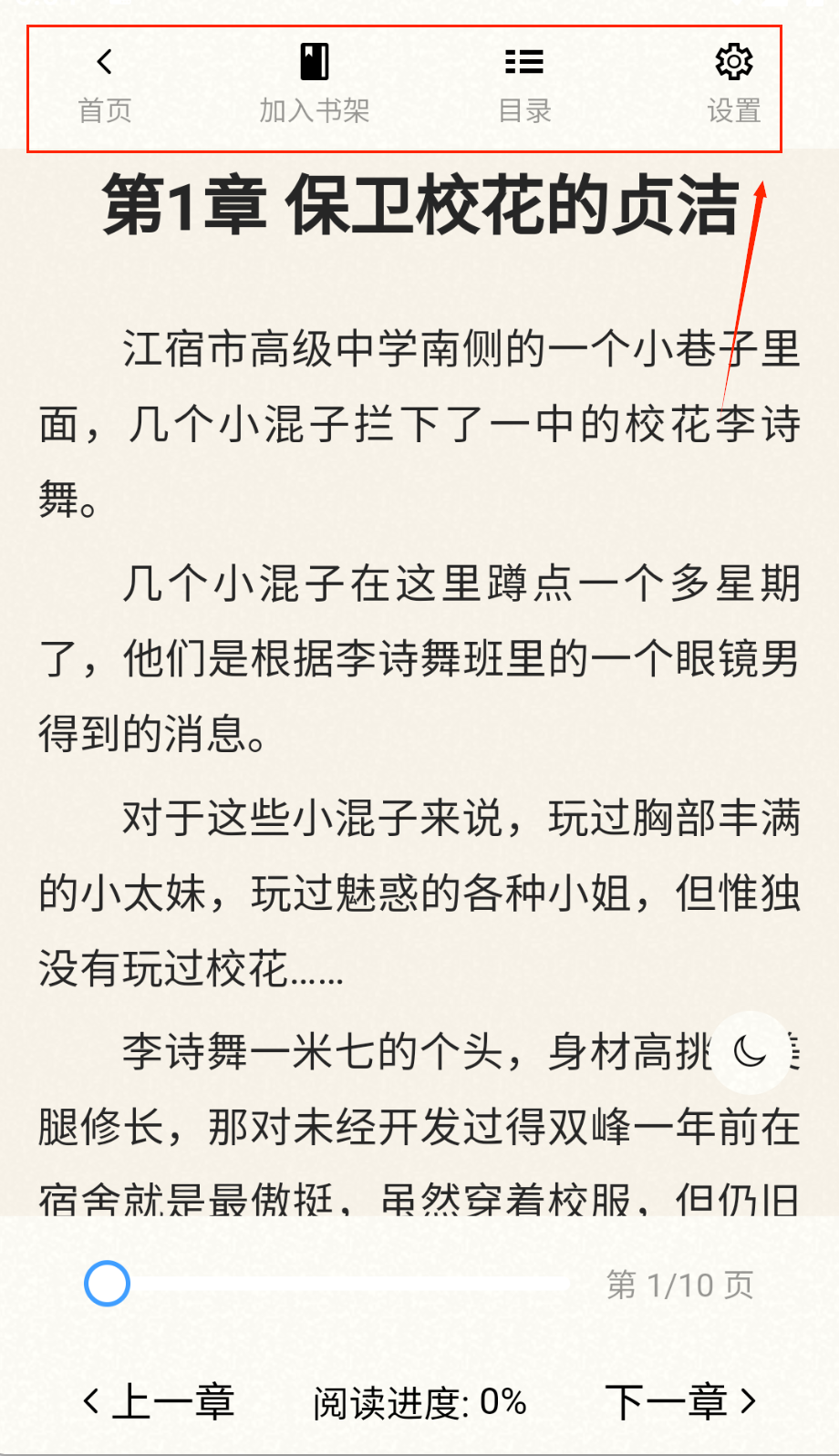 4、跳转到目标章节后,就能查看该章节的具体内容,还可通过底部功能调整阅读设置,提升阅读体验哦。