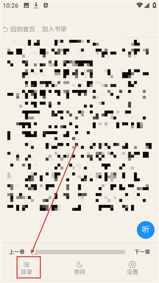 2、进入阅读界面后,点击底部的【目录】选项,可展开章节列表,方便快速切换到想看的章节哦。