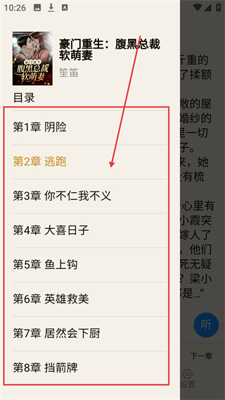 3、在目录列表中,选择想要阅读的章节,点击即可跳转到对应章节的内容页面,继续阅读啦。