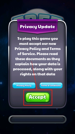1、在游戏开始前,阅读并点击“Accept”接受新的隐私政策和使用条款,以确保游戏正常运行。