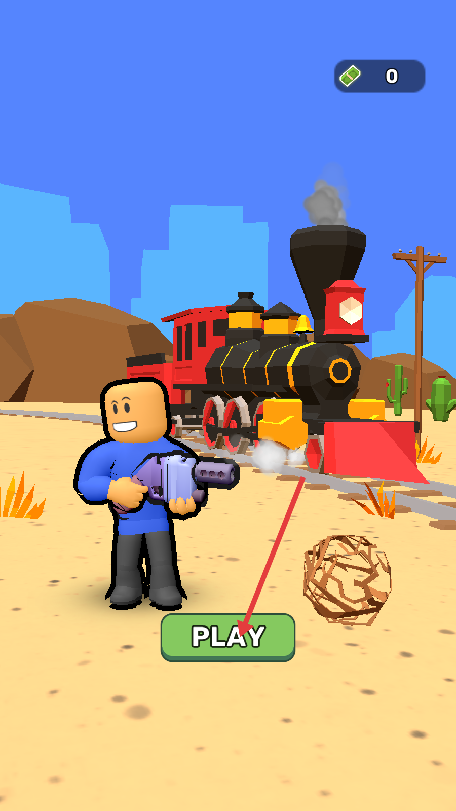1、点击【PLAY】开启游戏,操控持武器角色,在火车旁沙漠场景直面敌人,开启战斗之旅。