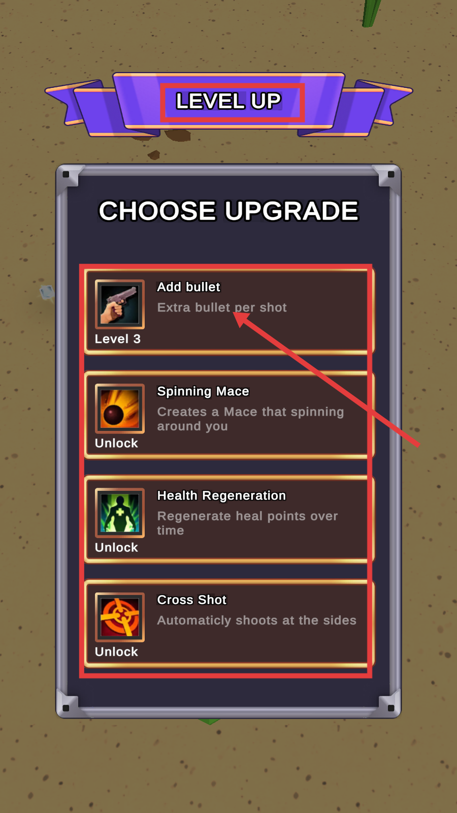 3、升级界面选【Addbullet】,提升单次射击子弹数,强化输出能力,应对更强敌人。