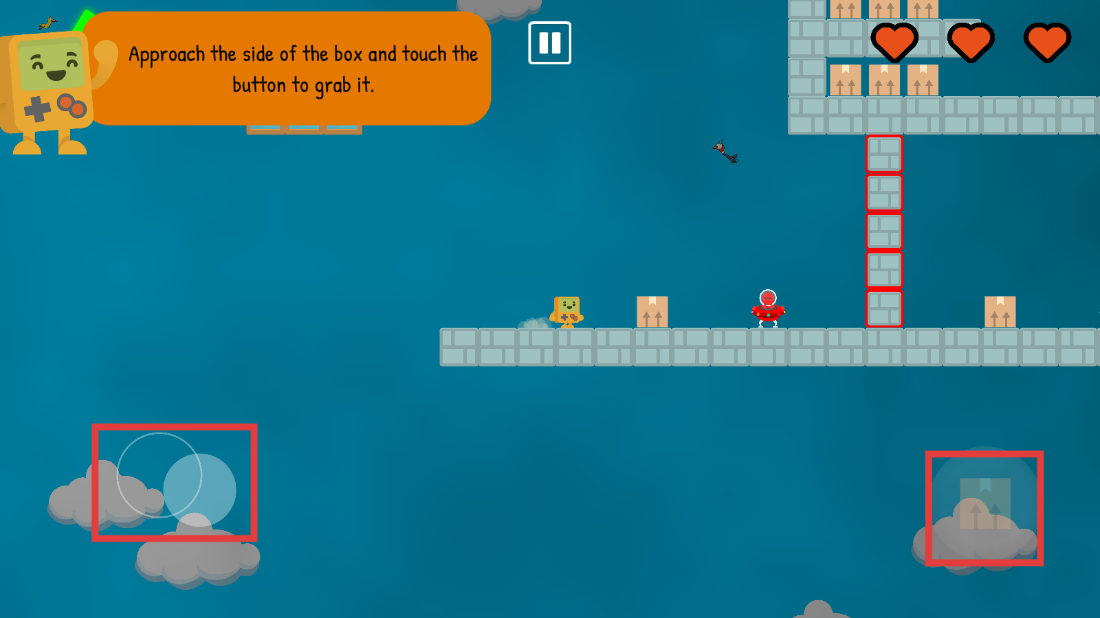 2、操控角色靠近箱子,通过左侧移动键、右侧抓取键,学习搬运箱子,完成基础交互。
