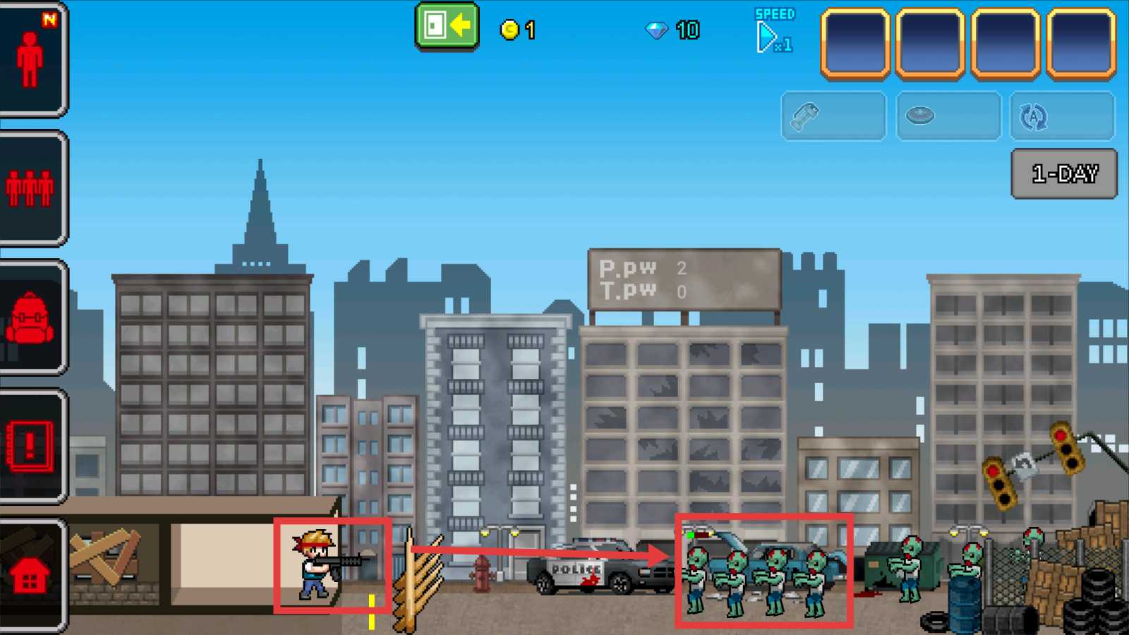 2、操控角色攻击绿色僵尸,积累初始金币,熟悉战斗操作,优先清理近程敌人。