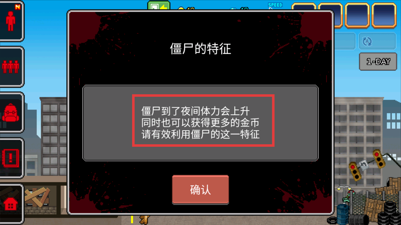 3、通过提示利用夜间时段刷怪,僵尸体力提升,但金币收益更高,集中获取资源。