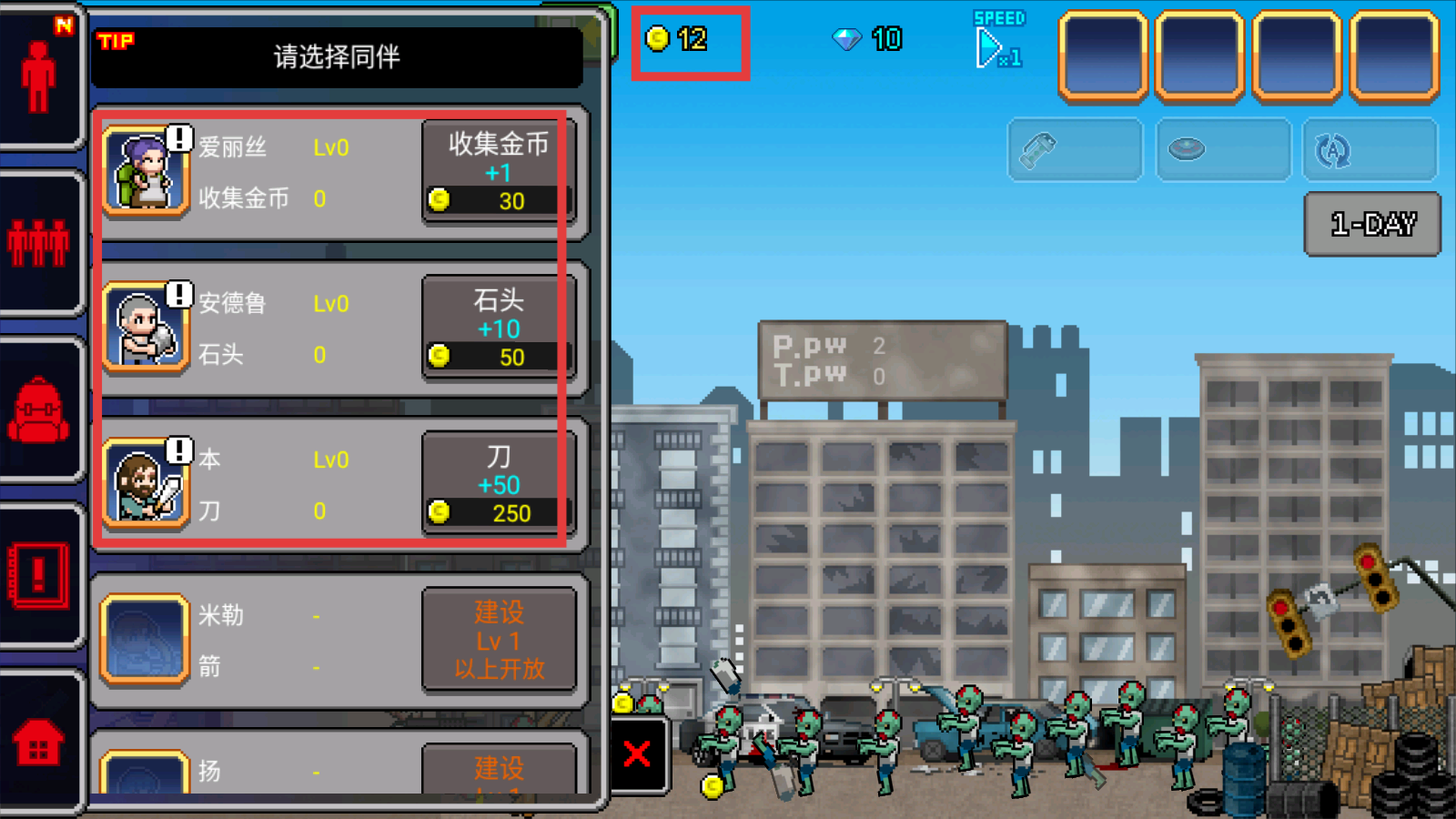 4、阵容搭配策略:招募不同攻击方式同伴,合理组合防守阵容,抵御夜晚增强的僵尸攻势确保持续生存。