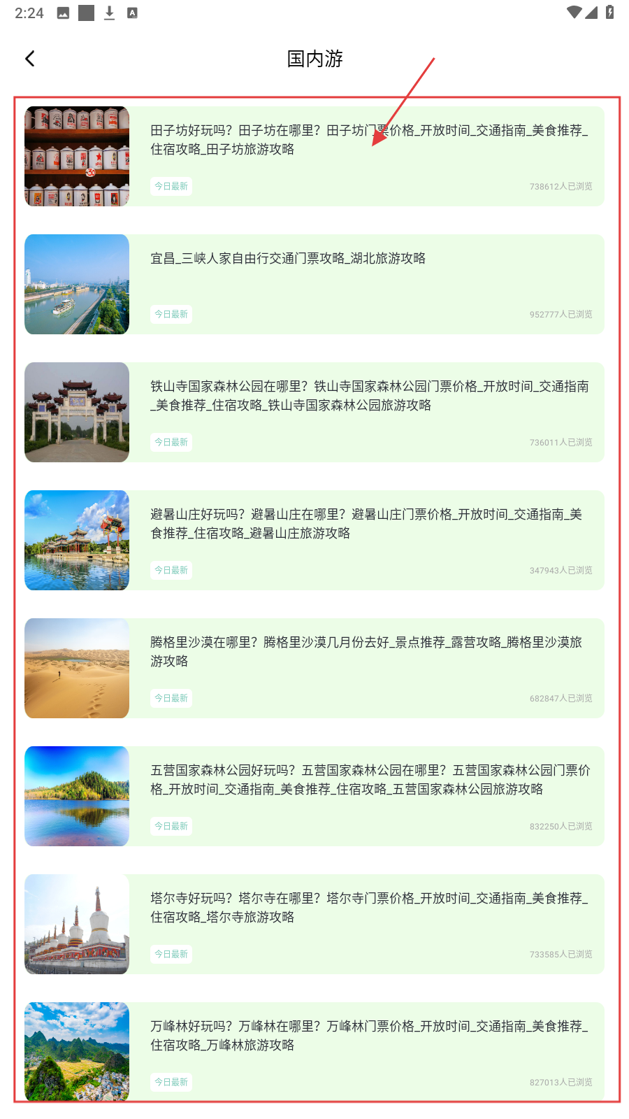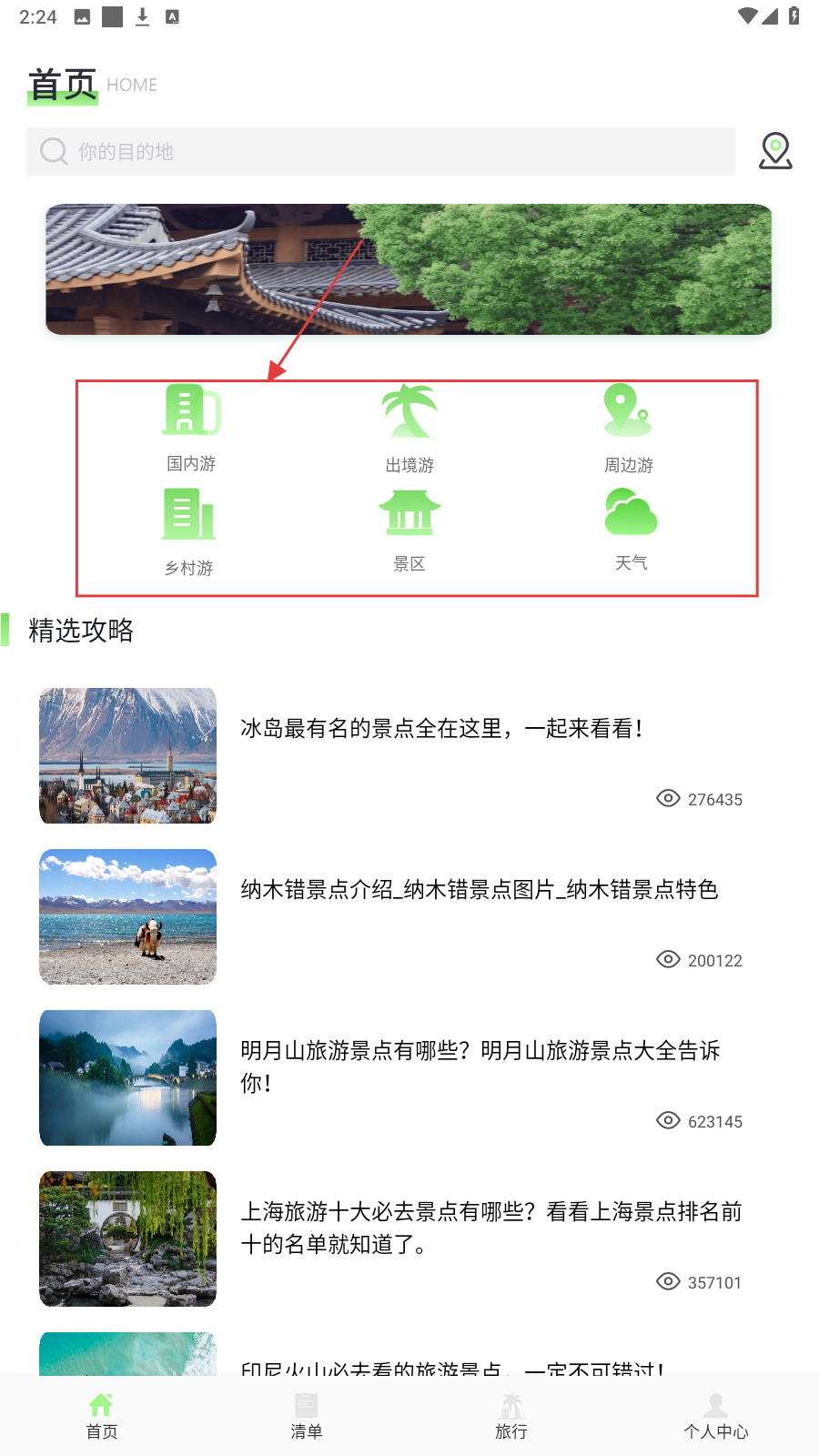 2、点【国内游】,浏览如【田子坊】等景点攻略,获取门票-交通等信息。