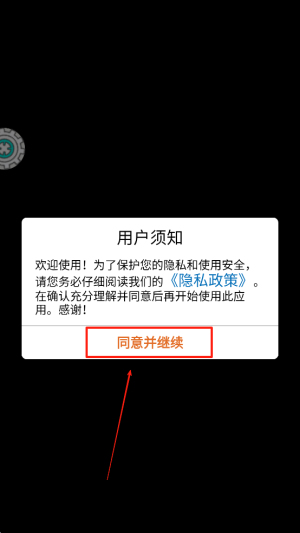1、在游戏开始界面,阅读并点击“同意并继续”以接受用户须知和隐私政策。