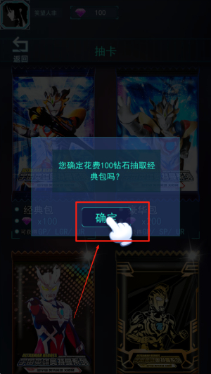3、确认花费钻石抽卡。当系统提示花费100钻石抽取经典包时,点击“确定”以确认操作。
