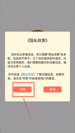 1、同意隐私政策。在游戏开始前,点击“同意”按钮以接受隐私政策,开始游戏。
