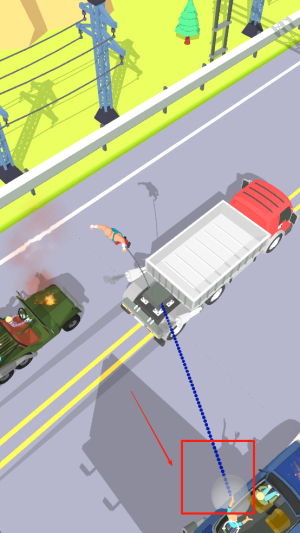 3、进行救援操作。根据蓝色虚线指示,点击屏幕将绳索抛向目标,完成救援。