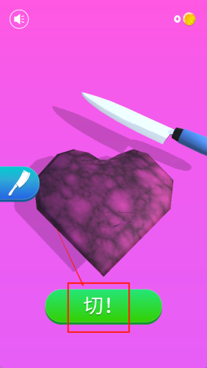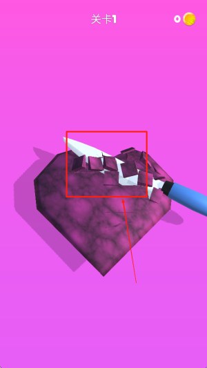 2、切割宝石。点击“切!”按钮,开始切割屏幕上的宝石。