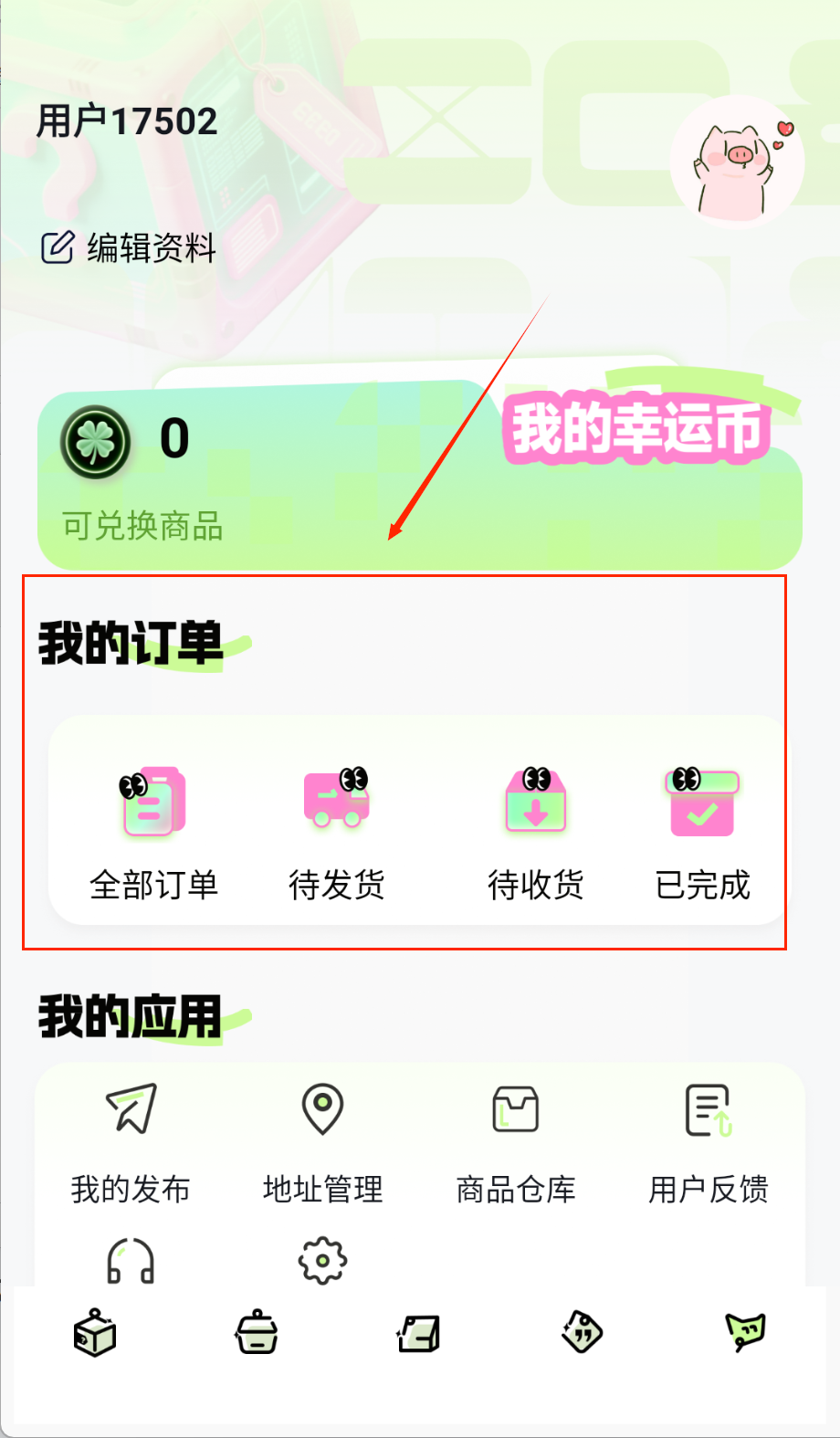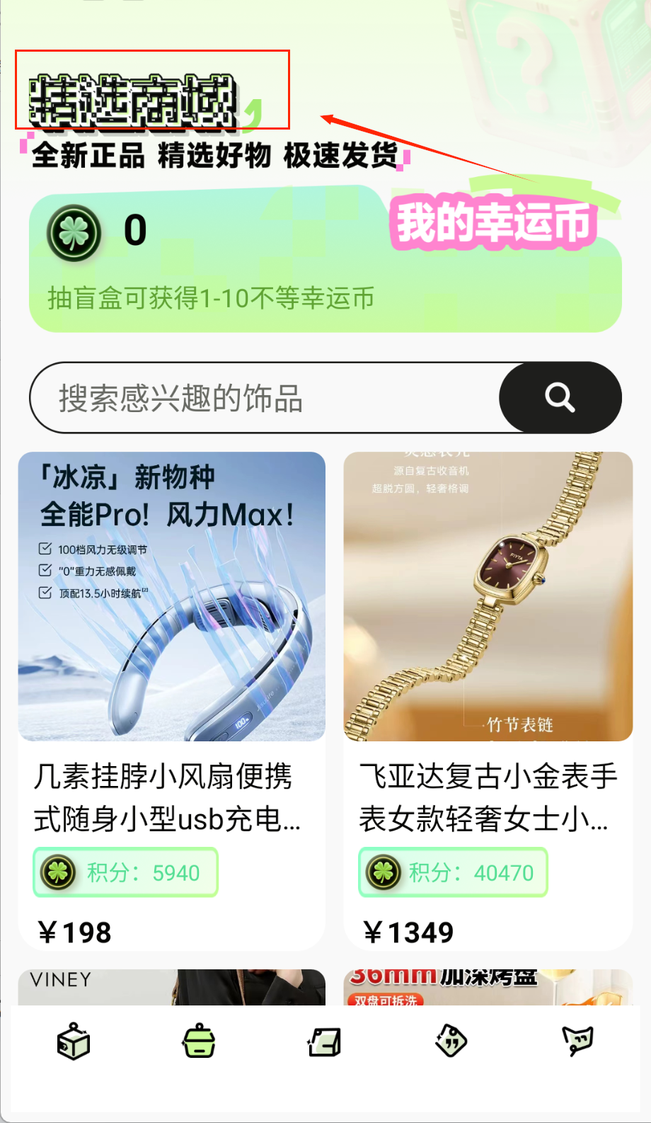 1、构建完整的积分生态,拆盒获得的幸运币可兑换指定商品或参与抽奖,积分永久有效不过期提升用户粘性。