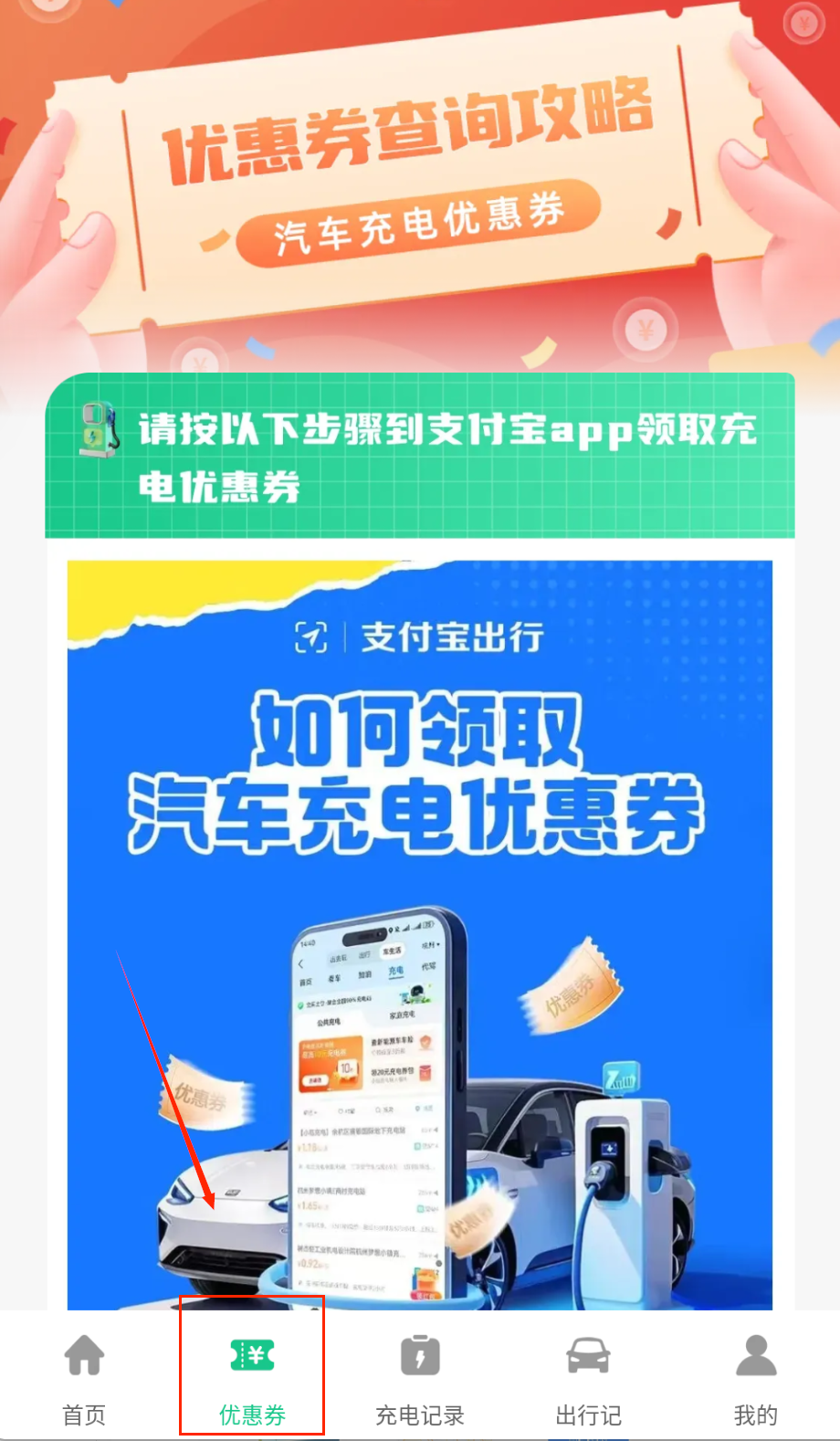 2、在优惠券中心查看可领取的充电优惠,点击立即领取即可存入账户。使用时会自动抵扣,无需额外操作。