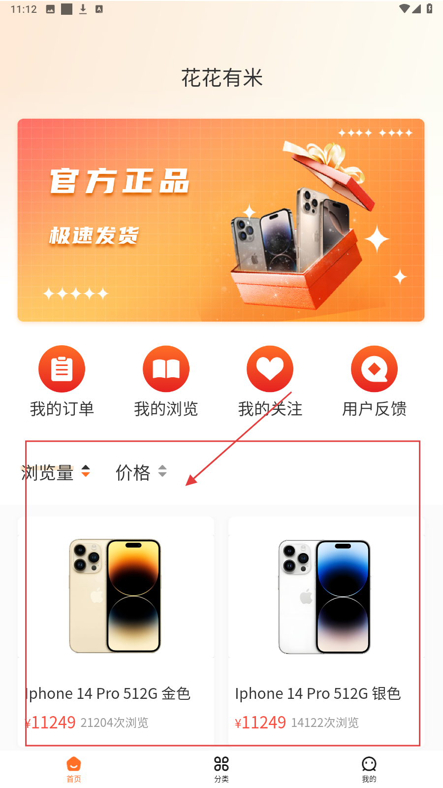 1、进入【花花有米】首页,选心仪手机商品,如苹果机型。