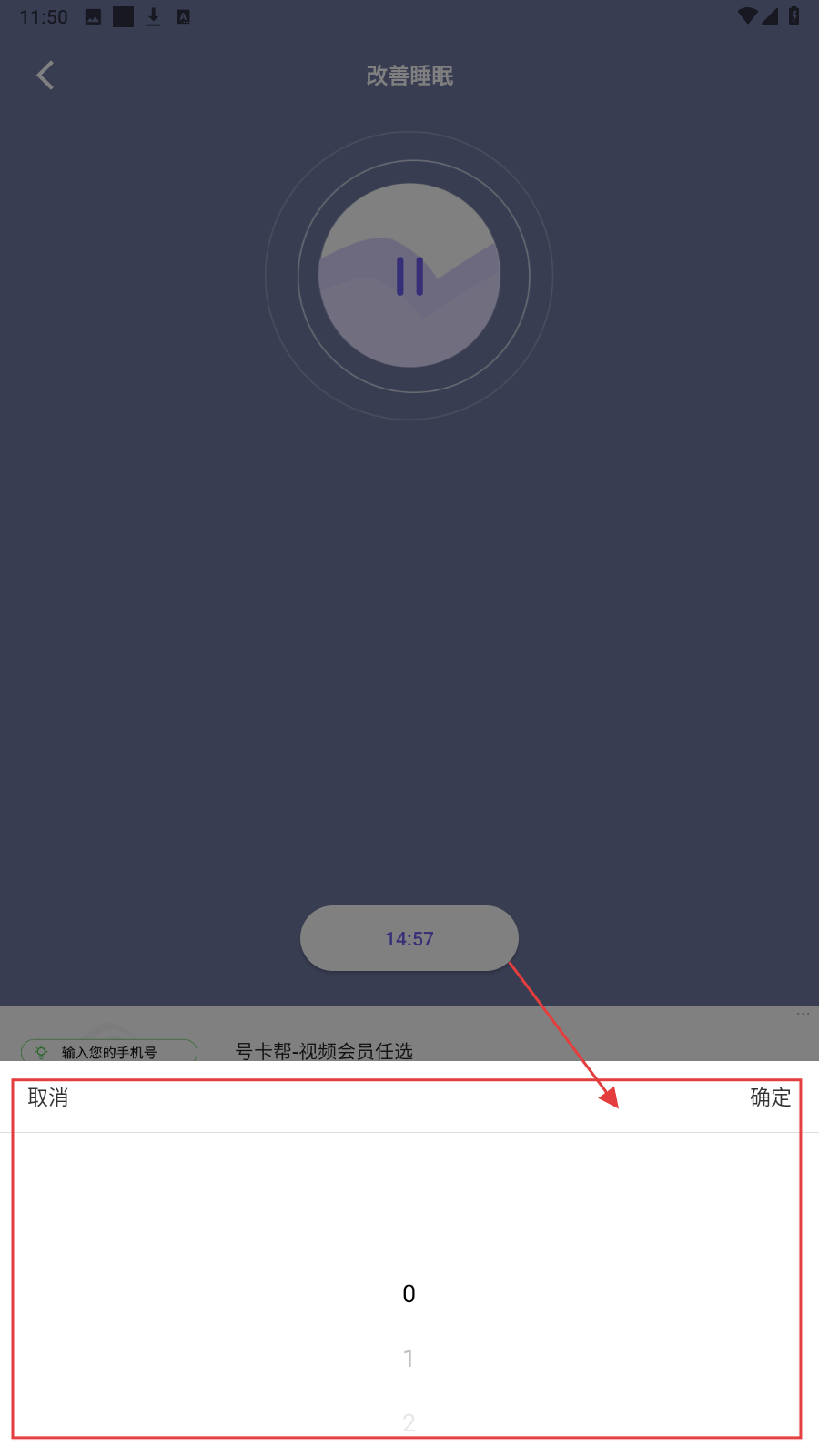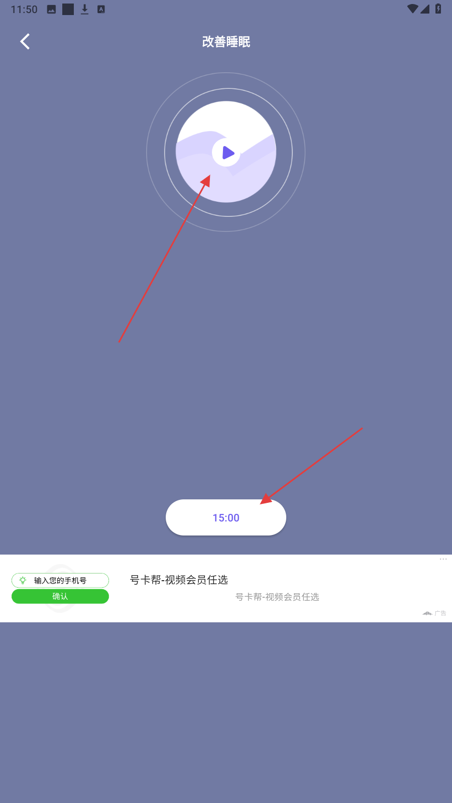 2、在改善睡眠页,点播放按钮,设置时长(如15:00)启动助眠内容。