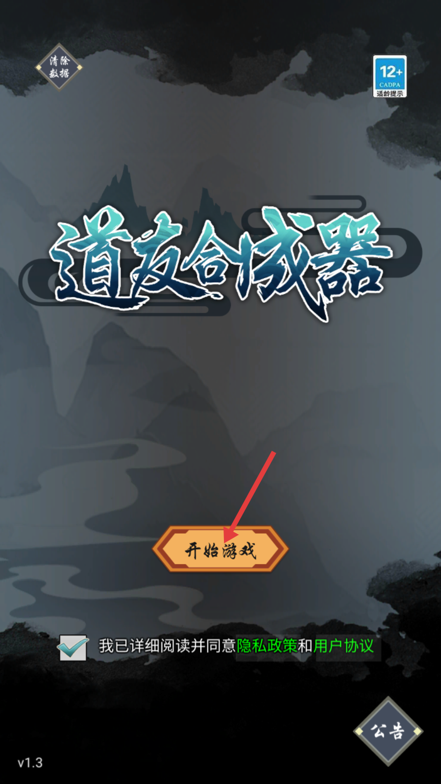 1、勾选协议后点击【开始游戏】,进入《道友合成器》修仙世界,开启宗门养成之旅。