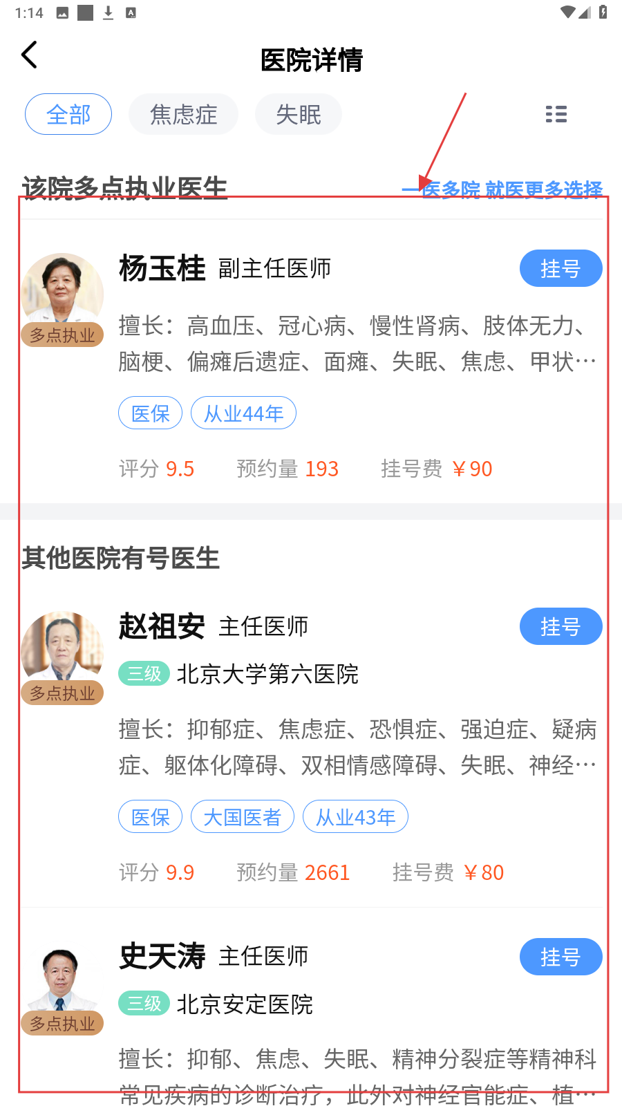 2、详细医生资料:展示专家的专业领域、诊疗经验和出诊时间等详细信息,让用户能全面了解医生背景,选择更适合自己的诊疗专家。