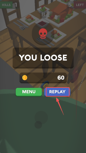 4、如果游戏失败,点击“REPLAY”按钮重新开始游戏。