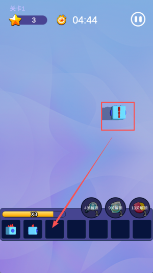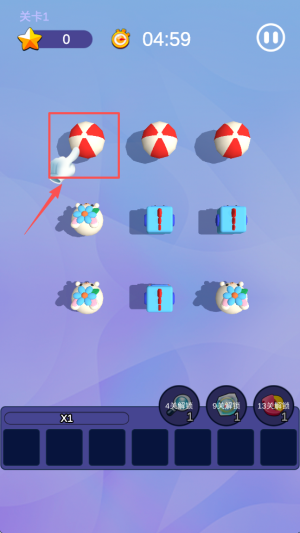 1、点击主界面上的“关卡1”进入游戏关卡。