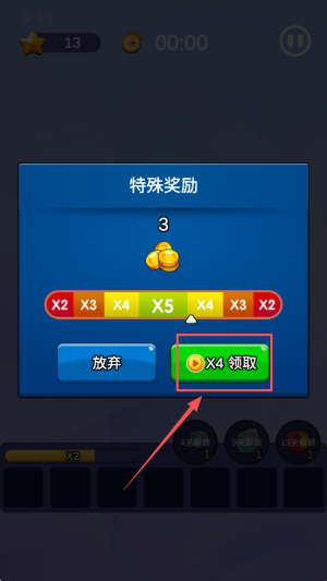 4、在关卡完成后,选择领取特殊奖励,例如点击“X4 领取”按钮来获取更多奖励。