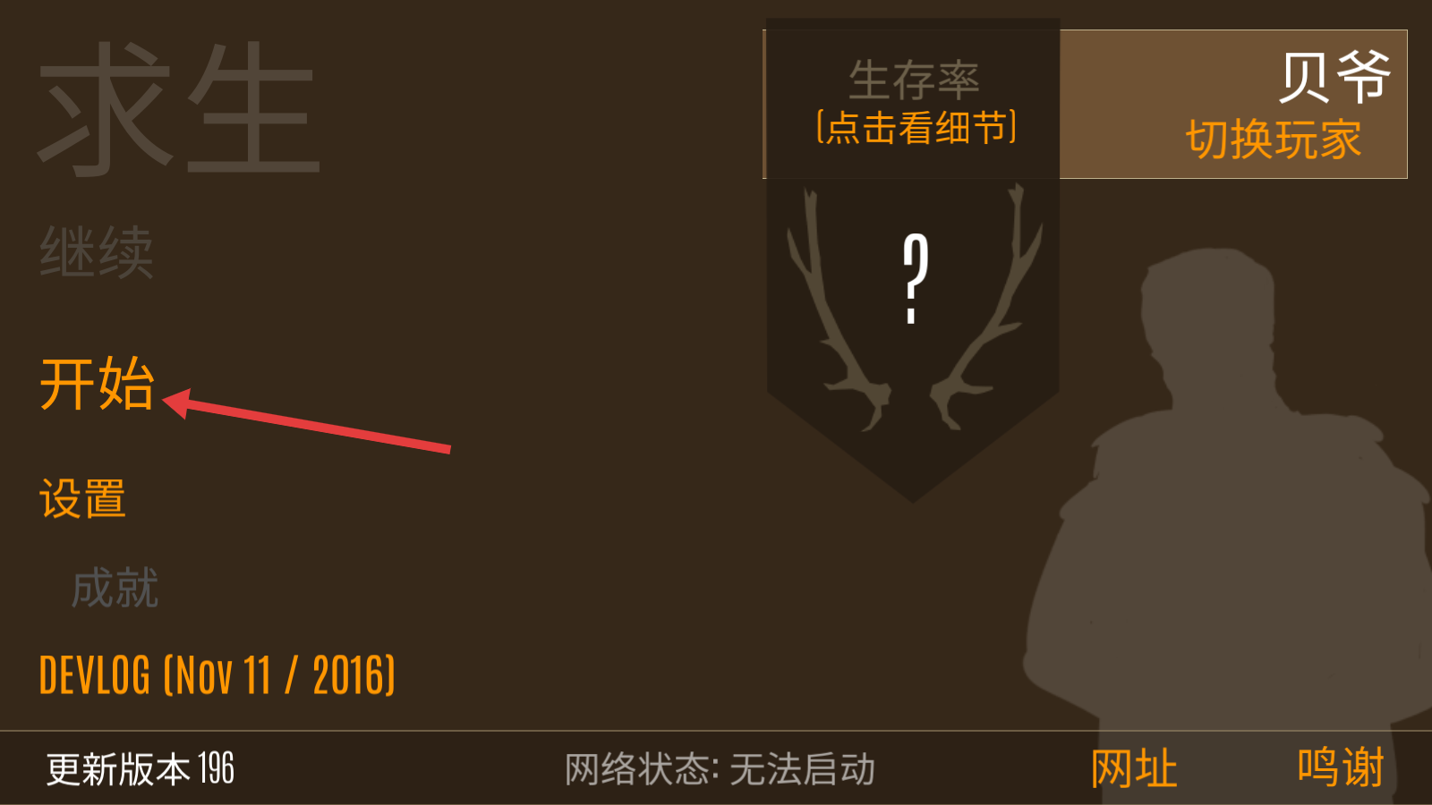 1、点击主界面左侧【开始】按钮,启动《求生》游戏流程。