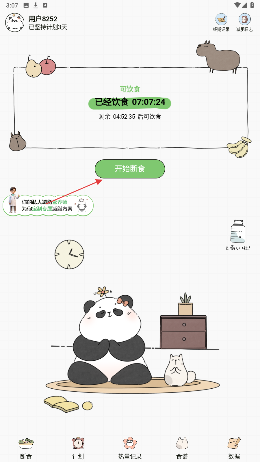 1、进入主页,根据饮食时长,点【开始断食】开启轻断食流程。
