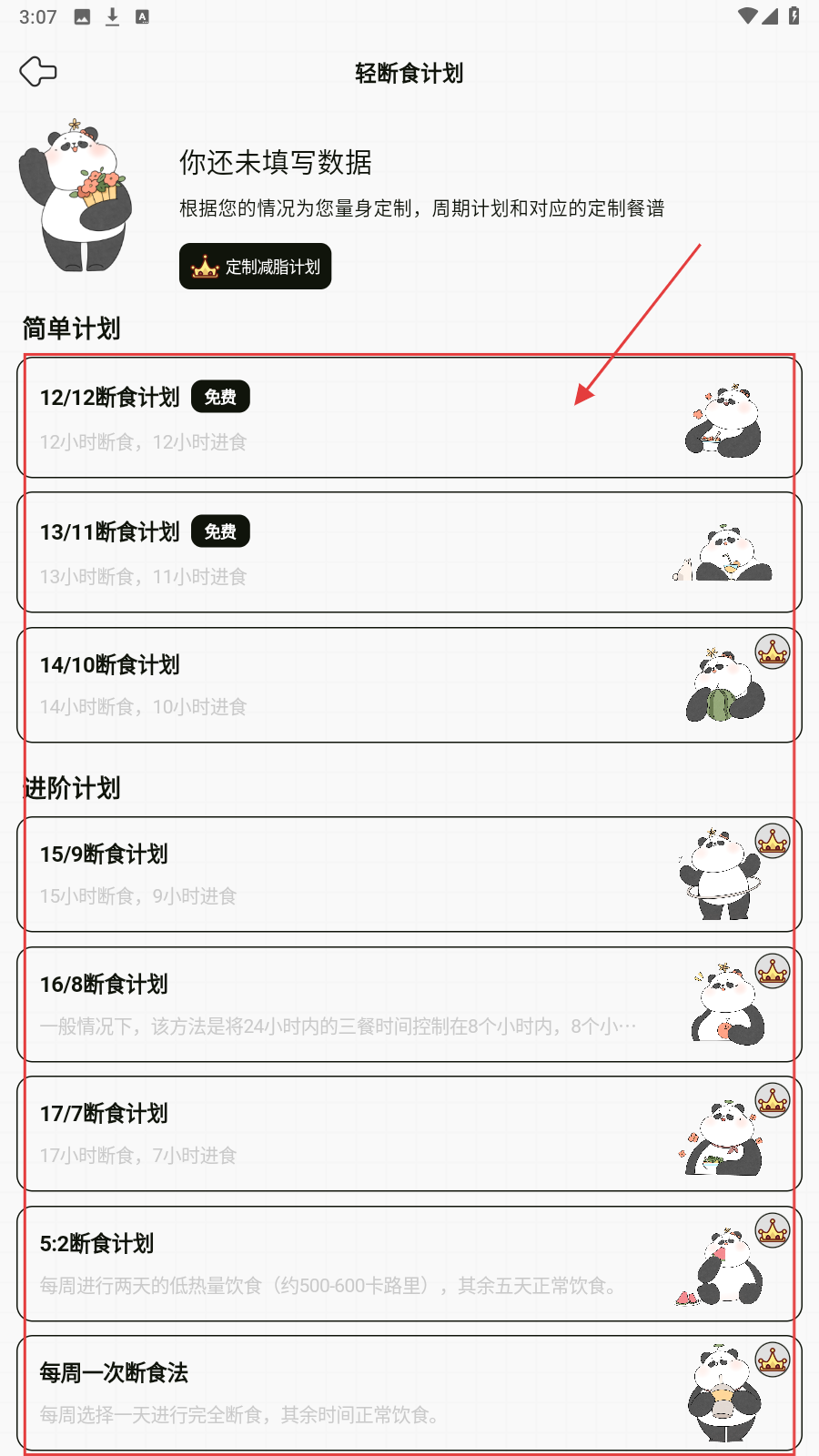 3、到轻断食计划页,选适合的计划(如12/12断食计划),进入详情。