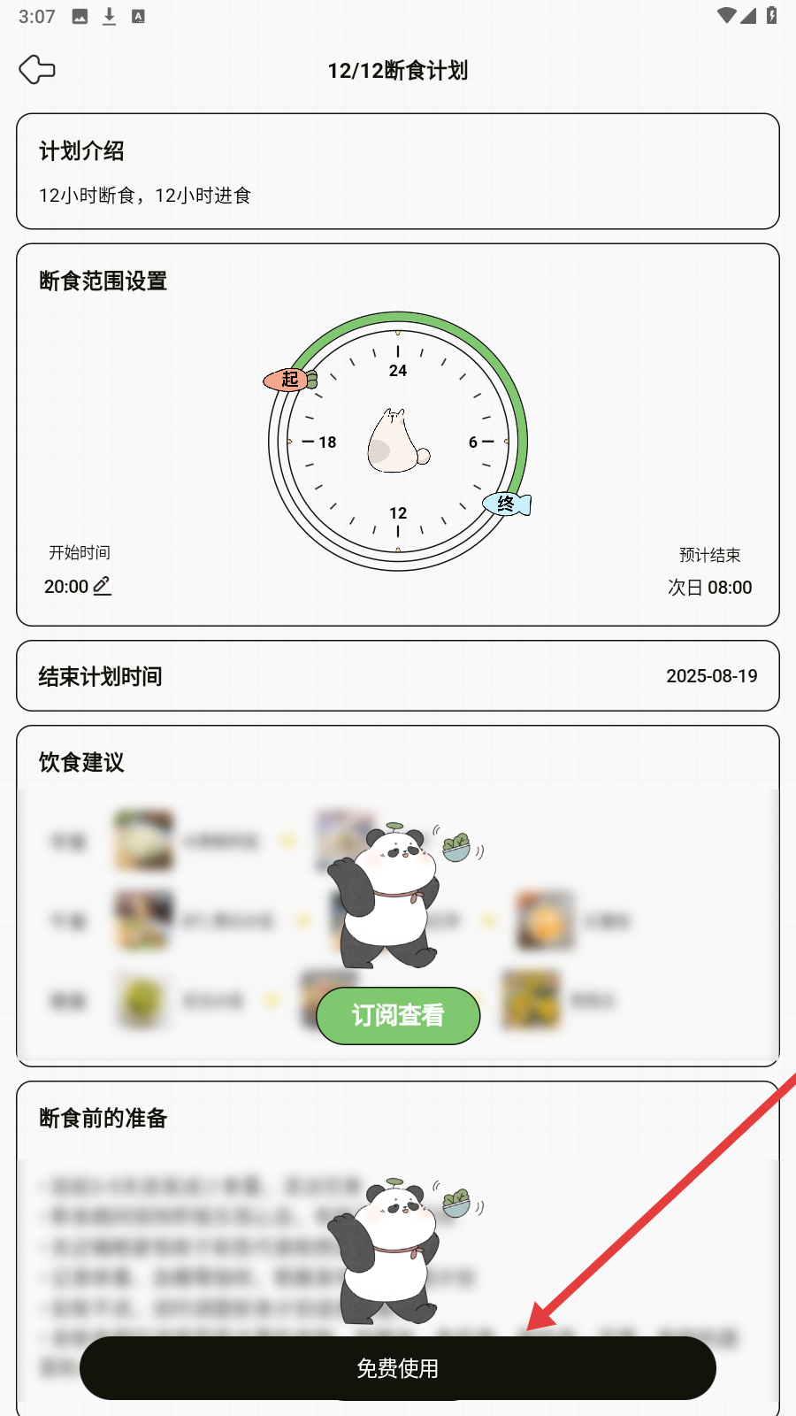 4、在计划详情页,读介绍和建议,点【免费使用】启用该断食计划。