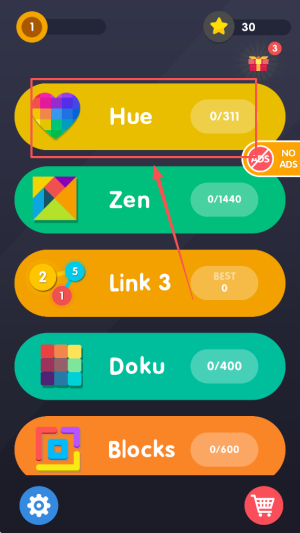 1、选择游戏模式,例如点击“Hue”进入色彩模式。