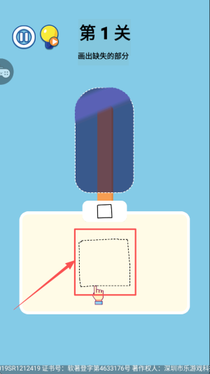 3、在游戏关卡中,根据提示画出缺失的部分,例如画一个正方形。