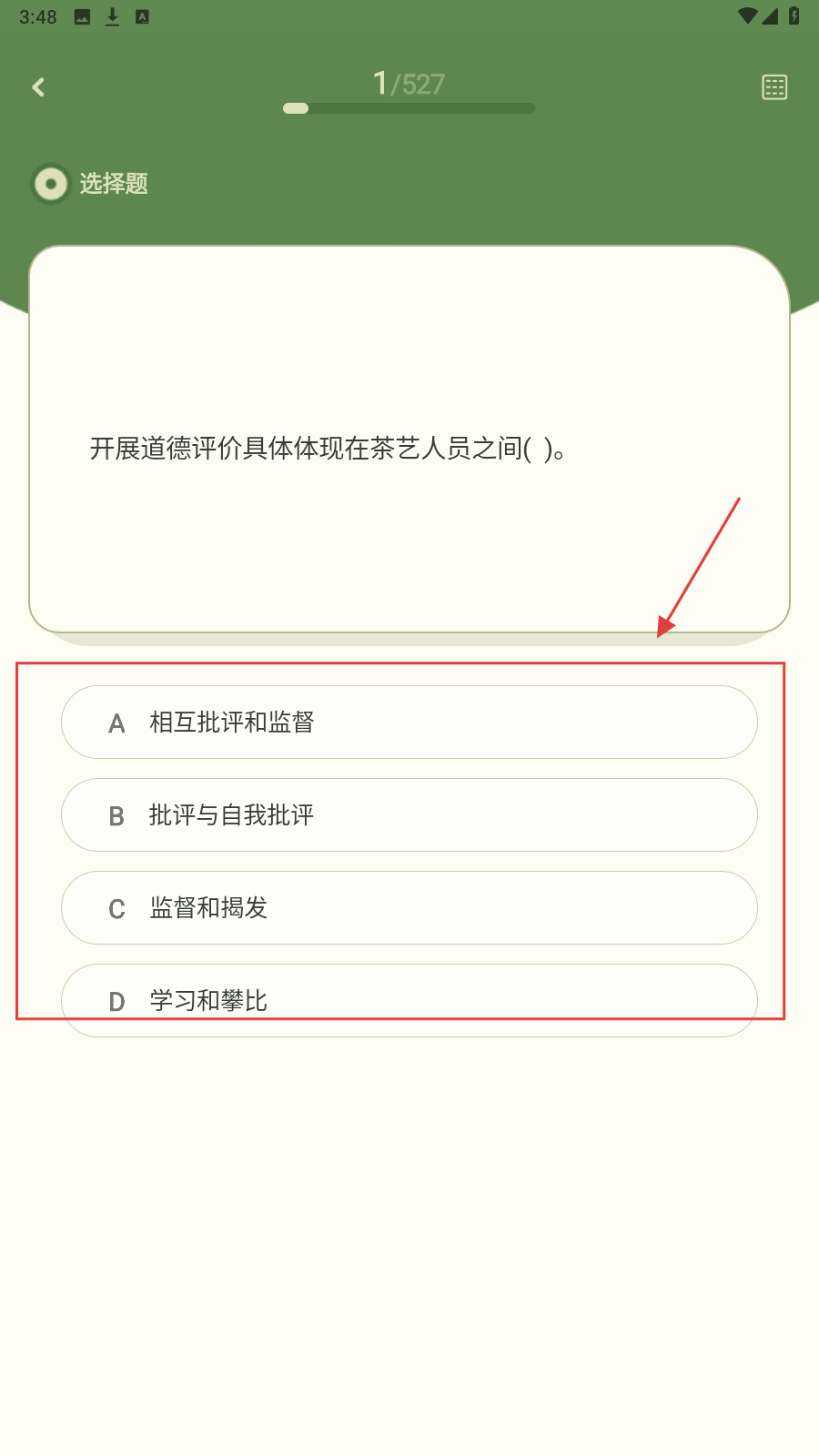 2、做选择题时,读题后选答案,刷题巩固茶艺知识,提升正确率。