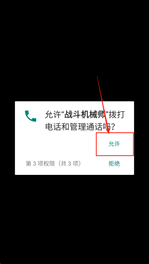 2、在弹出的询问框里,选择“允许”以同意战斗机械师拨打电话。
