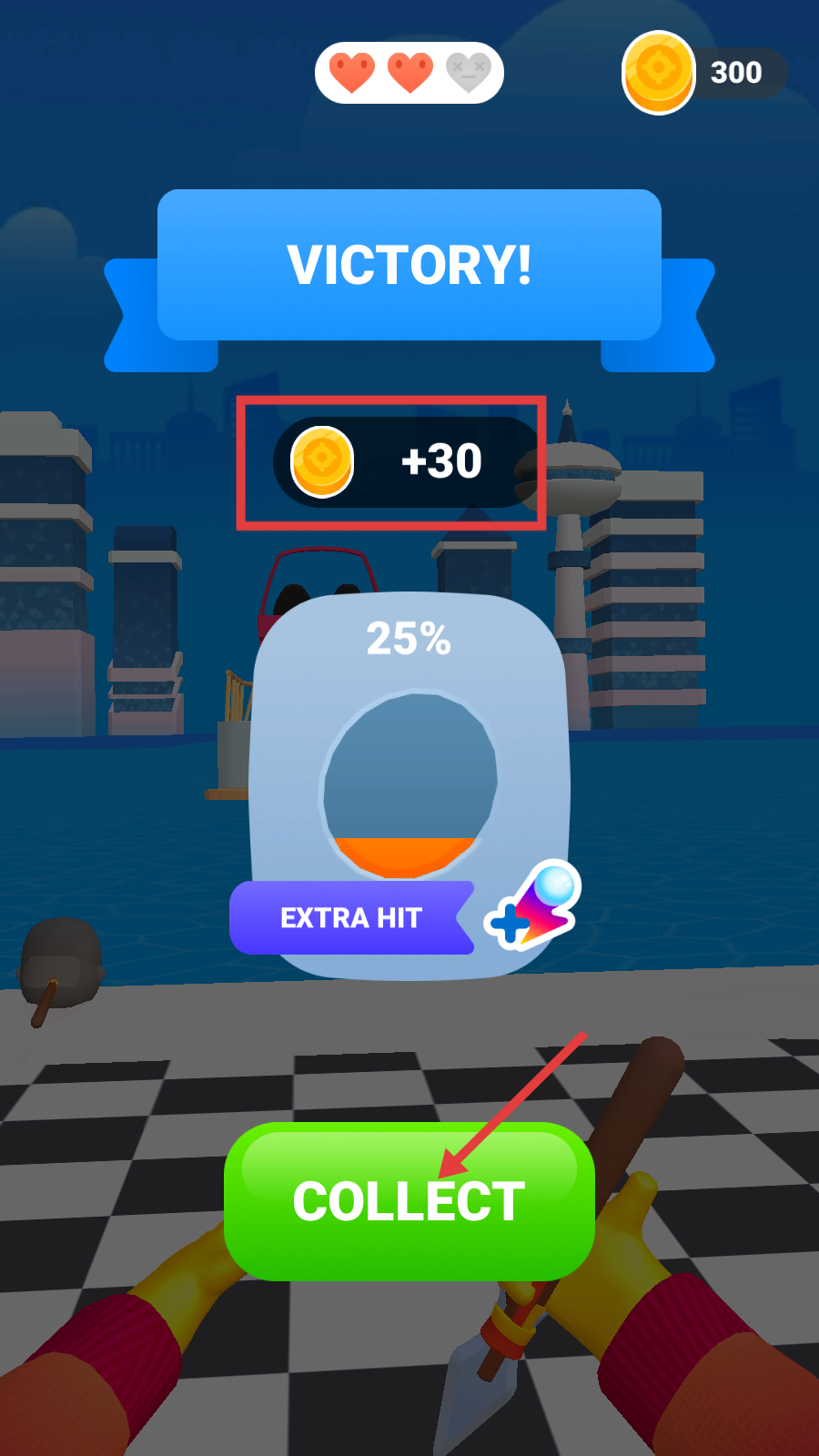 4、胜利后点击绿色【COLLECT】,领取【+30金币】奖励。